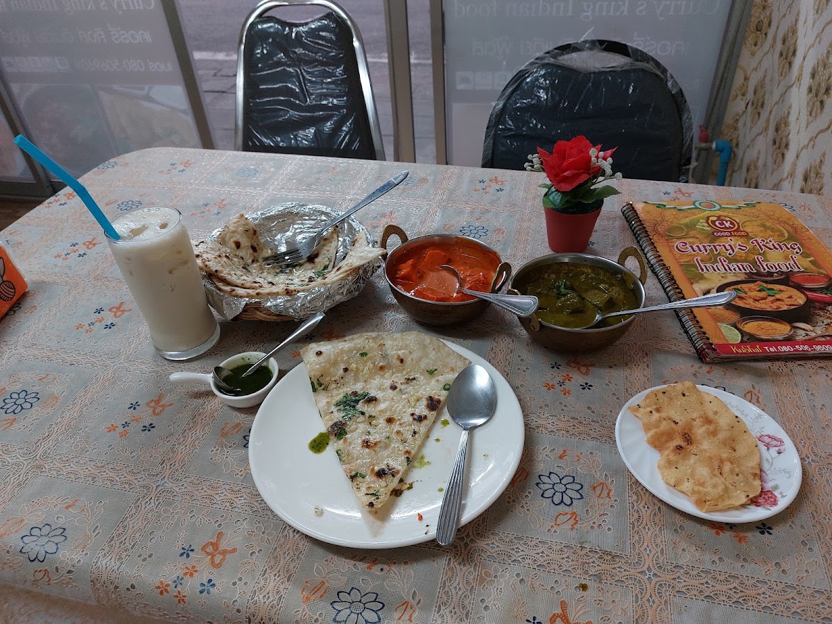 The best indian food I ever tasted wooow. So full of flavor all balanced and fresh. Also the garlic nan was heavenly with loads of garlic and fresh coriander Never been to India, but of all the countries I ate in an Indian restaurant... the best. They life up to there name King's Curry. Saag paneer and paneer butter massala. Also the banana shake was tiptop!